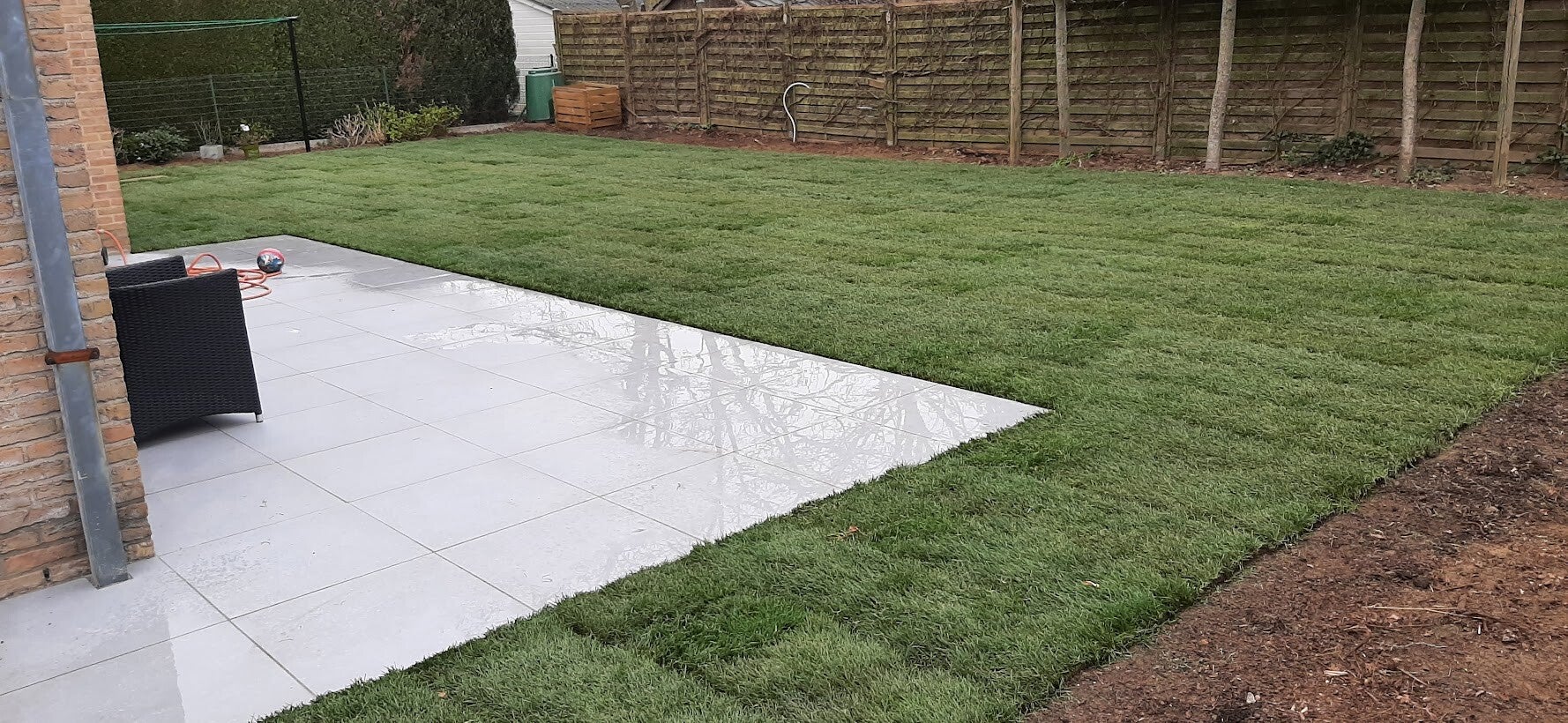 Een duurdere optie is het aanleggen van uw gazon met grasmatten. 1 groot voordeel, eens de matten liggen hebt u direct een afgewerkte tuin en moet u geen 3 a 4 weken wachten zoals bij het graszaad.